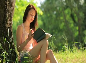 4 - ZEIGT CHRISTL - NACHDENKLICH - im BUCH DER BÜCHER LESEND -